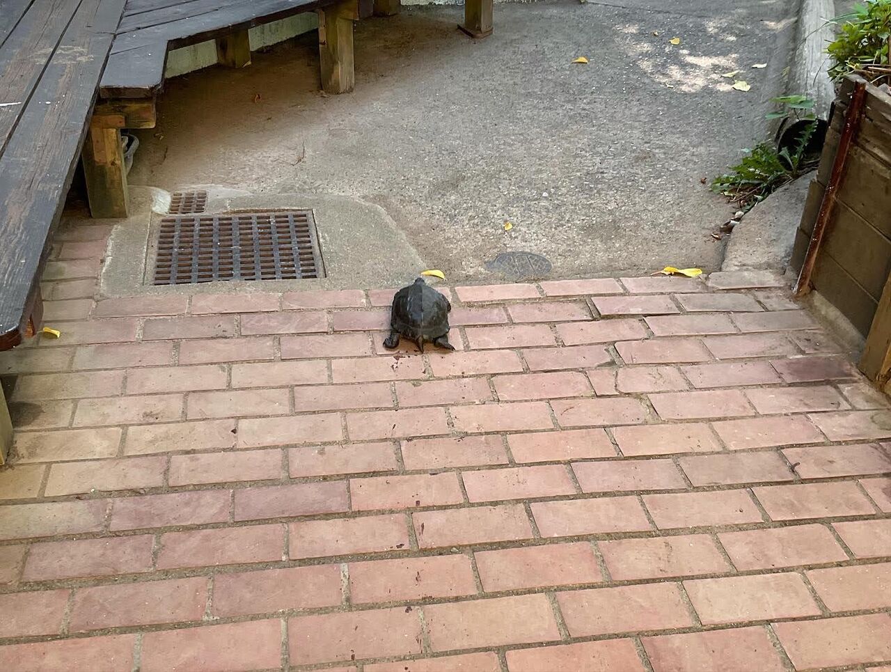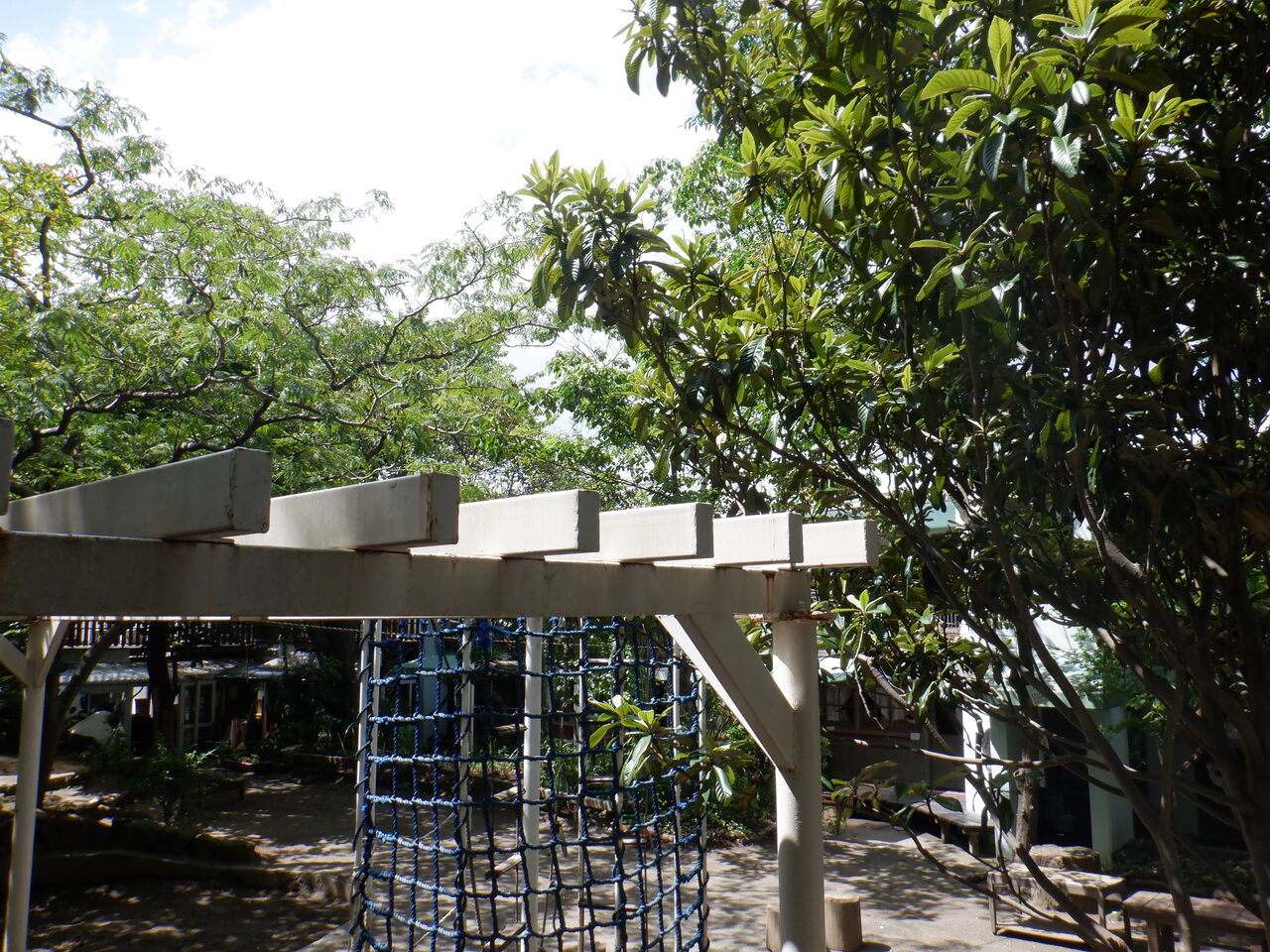 幼稚園の園庭では、子どもたちが少ないからか、悠々と日向ぼっこを楽しんでいます。