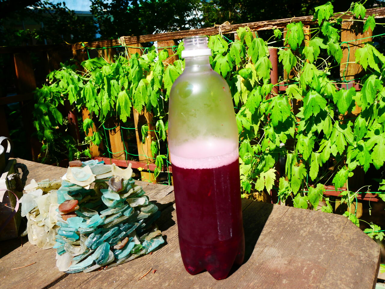 食育係では、園庭で採れたブルーベリーを使って、酵母液を作りましたよ。