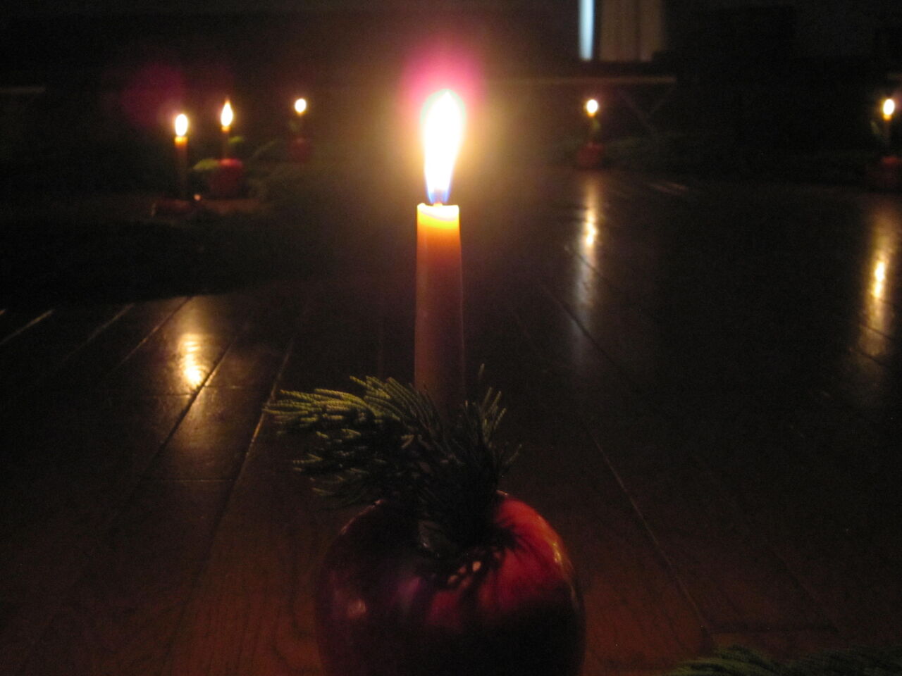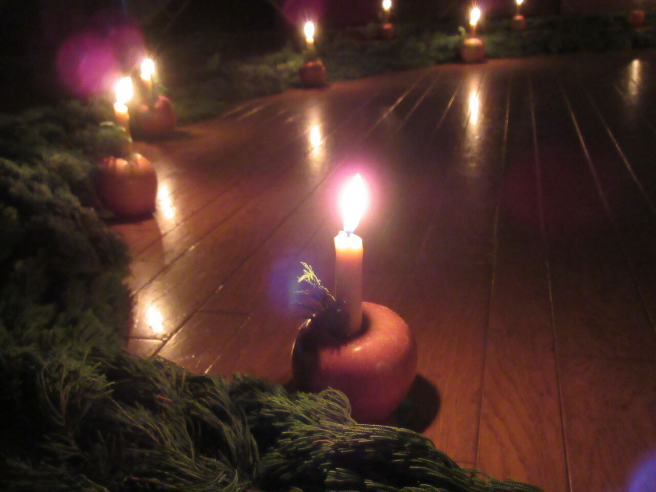 優しく光るりんごろうそくの明かりを見ました