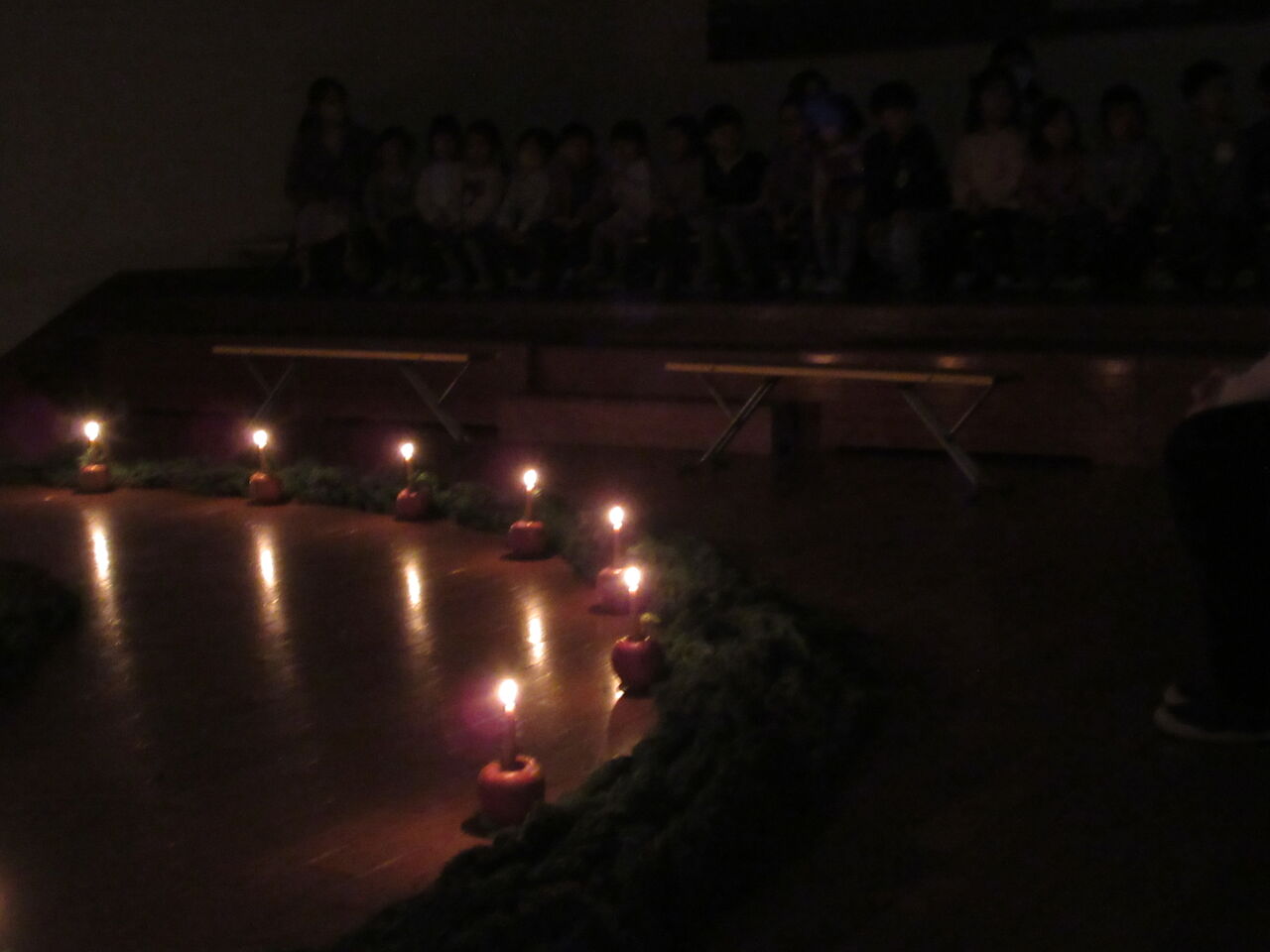 静寂の中でのアドヴェントの庭。カメラの音さえも雑音に聞こえ、「この雰囲気を、この空気を壊したくない」と思い、写真を撮るのをやめました。本当ならば、子どもたちの姿を撮って載せたかったのですが、申し訳ありません。それほど、子どもたち一人一人が一歩一歩を大切にしながら歩んで行ったのです。