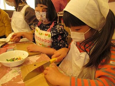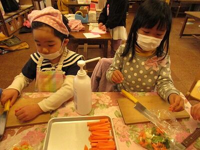 最後は野菜を切る・パンをこねる所から一緒に行うことができました。