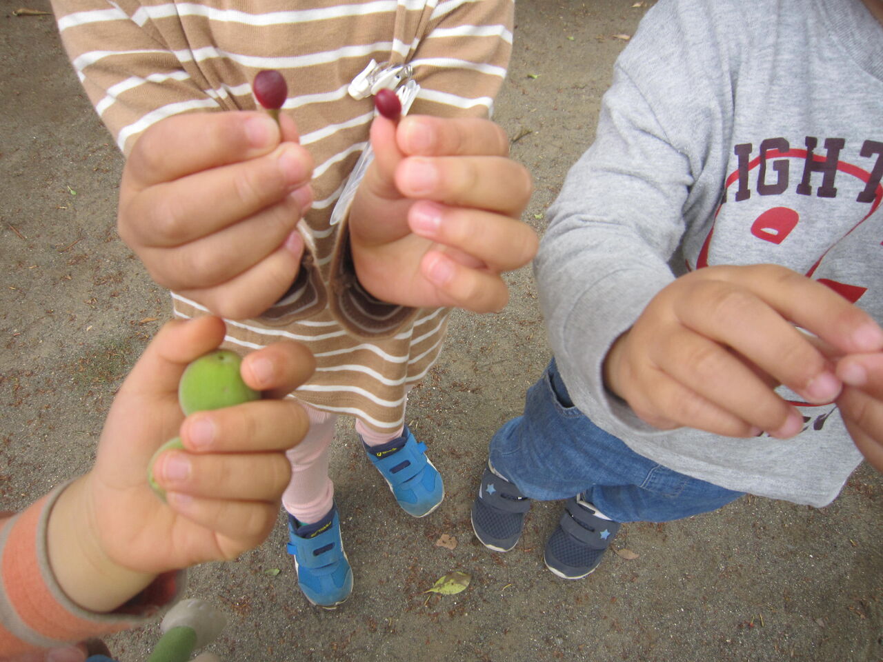 梅の実や桜の実も落ちていてたくさん拾って集めている子もいます